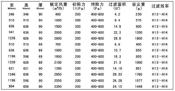 五、“梓凈”DOP液槽密封式高效過(guò)濾器技術(shù)參數(shù):