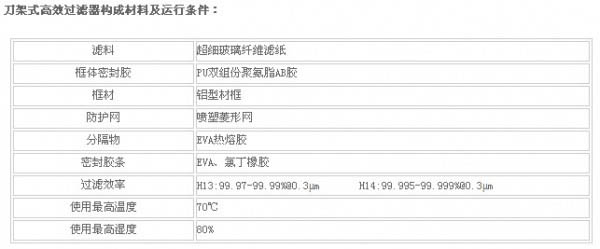 刀架式高效過(guò)濾器構(gòu)成材料及運(yùn)行條件