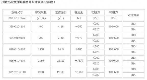 刀架式高效過(guò)濾器技術(shù)參數(shù)