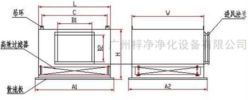 A、高效送風(fēng)口靜壓箱體,材質(zhì)有冷軋鋼板(A3板)與不銹鋼板。箱體是用作吊在天花上與四周庫(kù)板相結(jié)合密封,也是高效送風(fēng)口四件套主體。