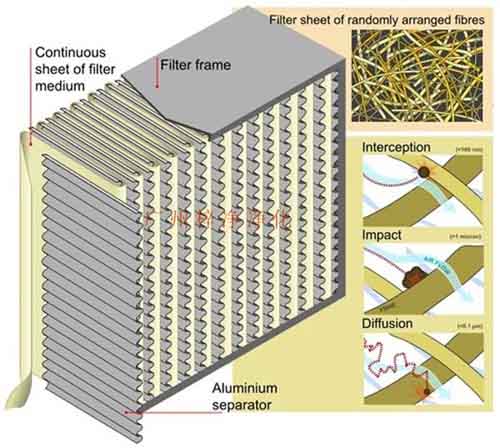 有隔板高效空氣過濾器,多采用鋁箔、紙做成折疊狀作為濾芯分隔物,形成空氣通道。分隔板有采用優質牛皮紙,熱滾壓成形或采用膠版紙作分隔板。