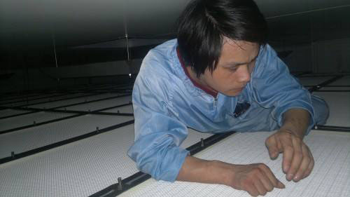 若過濾器及四周間隙不需檢漏,則可把已經(jīng)擦洗干凈的高效過濾器擴(kuò)散板裝上。若需檢漏,則在檢漏合格后再安裝擴(kuò)散板。安裝擴(kuò)散擴(kuò)板時應(yīng)對正高效過濾器,螺栓不可擰得太緊,以四周縫隙一致為宜。擴(kuò)散板的擦洗應(yīng)有專人負(fù)責(zé),一般擴(kuò)散板出廠時并不擦洗,故在安裝前應(yīng)用洗潔劑水清洗,除去油污及塵埃,最后用自來水沖洗,再用不掉纖維的干布擦凈余水,儲存在潔凈環(huán)境中待用。